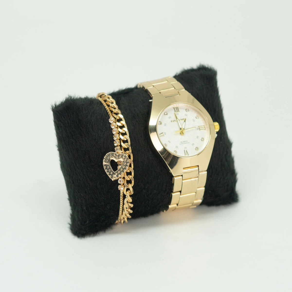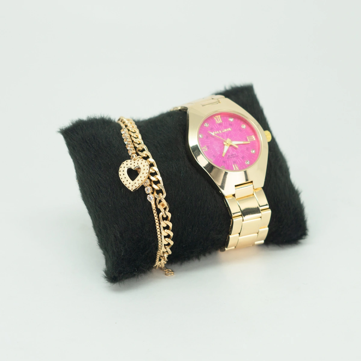O Kit Relógio Feminino Elegant e Pulseira com Pingente é um conjunto elegante e sofisticado, perfeito para mulheres que apreciam acessórios refinados. O relógio possui um design delicado, com detalhes que conferem um toque de feminilidade e elegância ao pulso. Sua pulseira é cuidadosamente elaborada para complementar o relógio, apresentando um pingente encantador que adiciona um charme especial ao conjunto.